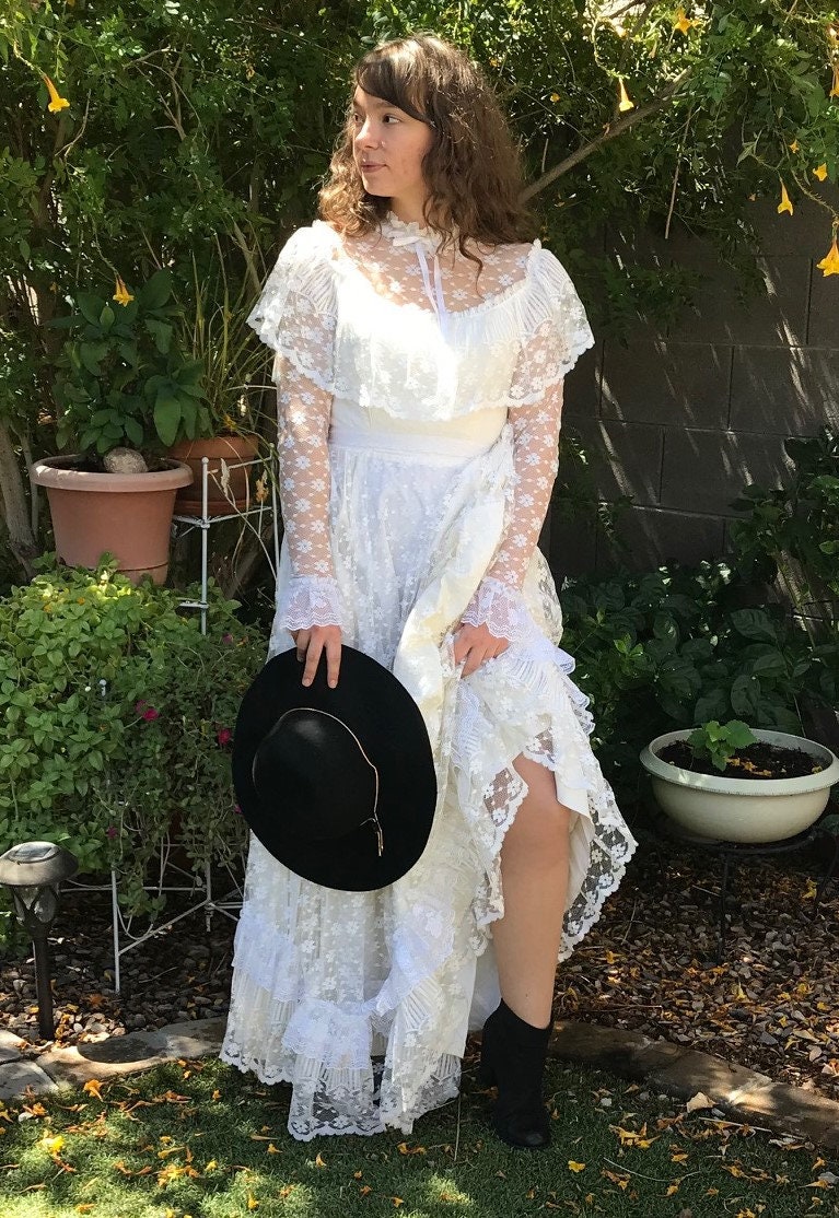 White Long Sleeves High Neck Vintage Lace A Line Wedding ... from www.babyonlinedress.com Ideal for a traditional wedding although can be altered by any discerning dressmaker. Vintage inspired wedding dresses and vintage style wedding gowns inspired by the 20s, 30s, 40s, 50s, 60s, and 70s. 50s vintage white lace tea length wedding dress with full gathered skirt. The veil is the perfect finishing touch to hide her modest face as she happily steals glances at her husband to be.of course, things are a little bit different now, and perhaps. Ethereal beauty meets the 1920s in the emmeline gown. Cropped shot of bride holding glass of wine and sitting on vintage chest. These vintage wedding dresses will make you want to tie the knot again, from 1950s vintage we can thank queen victoria for white wedding dresses. White vintage wedding dress with train satin off the shoulder wedding dress pleated mermaid bridal gowns.